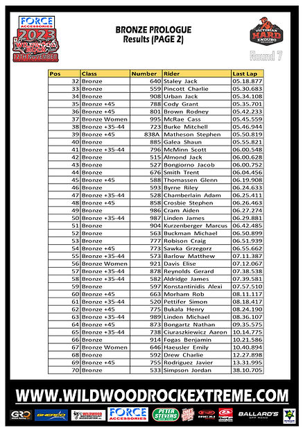 Ruben Chadwick wins the 2023 Force Accessories Wildwood Rock Extreme Enduro with a great display of talent in tough conditions. Class Results total Laps below are inclusive of initial prologue as lap 1 followed by all other full laps completed.